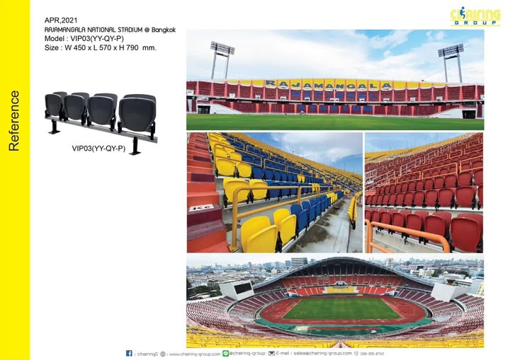 Chairing Group ภูมิใจที่ได้เป็นส่วนหนึ่งของสนามกีฬาระดับประเทศ “ราชมังคลากีฬาสถาน” สนามเหย้าของทีมชาติไทย ที่ใช้เก้าอี้รุ่นยอดนิยม VIP03 ซึ่งถือเป็นสนามแรกที่มีการติดตั้งเก้าอี้รุ่นนี้อย่างเป็นทางการ ดีไซน์ของ VIP03…