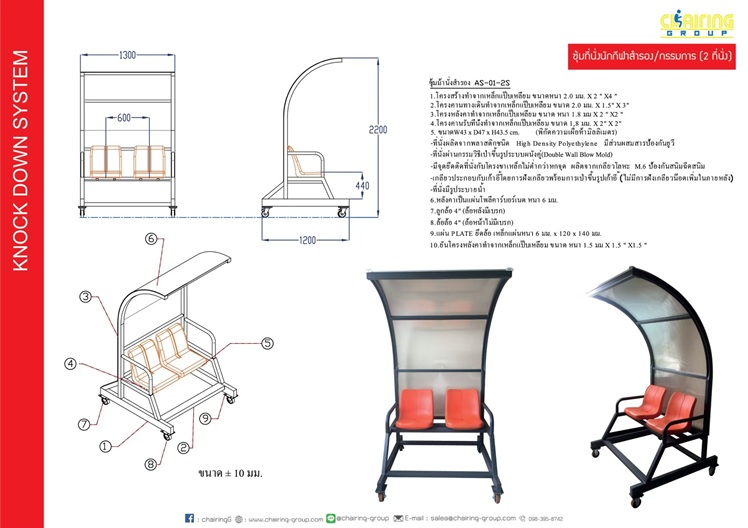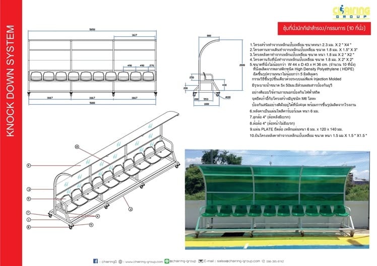 ขุ้มนั่งนักกีฬาสำรอง/กรรมการแบบ 10 ที่นั่งรุ่นนี้ออกแบบมาเพื่อรองรับการใช้งานในสนามกีฬาที่ต้องการความทนทานและความปลอดภัยสูง โครงสร้างผลิตจากเหล็กพับขึ้นรูปหลายขนาดเพื่อให้แข็งแรงต่อแรงน้ำหนักและแรงสั่นสะเทือน ส่วนเบาะนั่งทำจากพลาสติก HDPE เกรดคุณภาพสูงขึ้นรูปด้วยระบบ Injection Molded ทำให้มีความยืดหยุ่น…