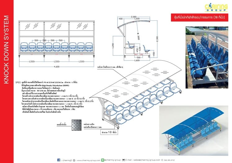 ที่นั่งพักคอยนักกีฬา รุ่น 18 ที่นั่ง (สำหรับกรรมการ นักกีฬา)