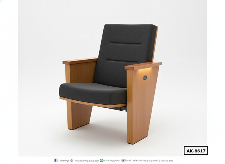 เก้าอี้หอประชุมรุ่น AK-8617 ถูกออกแบบมาเพื่อตอบโจทย์พื้นที่ที่ต้องการความเรียบร้อยเป็นระบบและภาพลักษณ์ที่ดูเป็นทางการ ตัวเบาะนั่งและพนักพิงหุ้มผ้าสีเข้ม ให้ความรู้สึกสุภาพ เหมาะกับห้องประชุมระดับองค์กร โรงละคร และหอประชุมขนาดใหญ่ โครงสร้างด้านข้างและแผ่นหลังเป็นงานไม้ ช่วยเสริมบรรยากาศให้ดูอบอุ่นแต่ยังคงความเป็นมืออาชีพ…